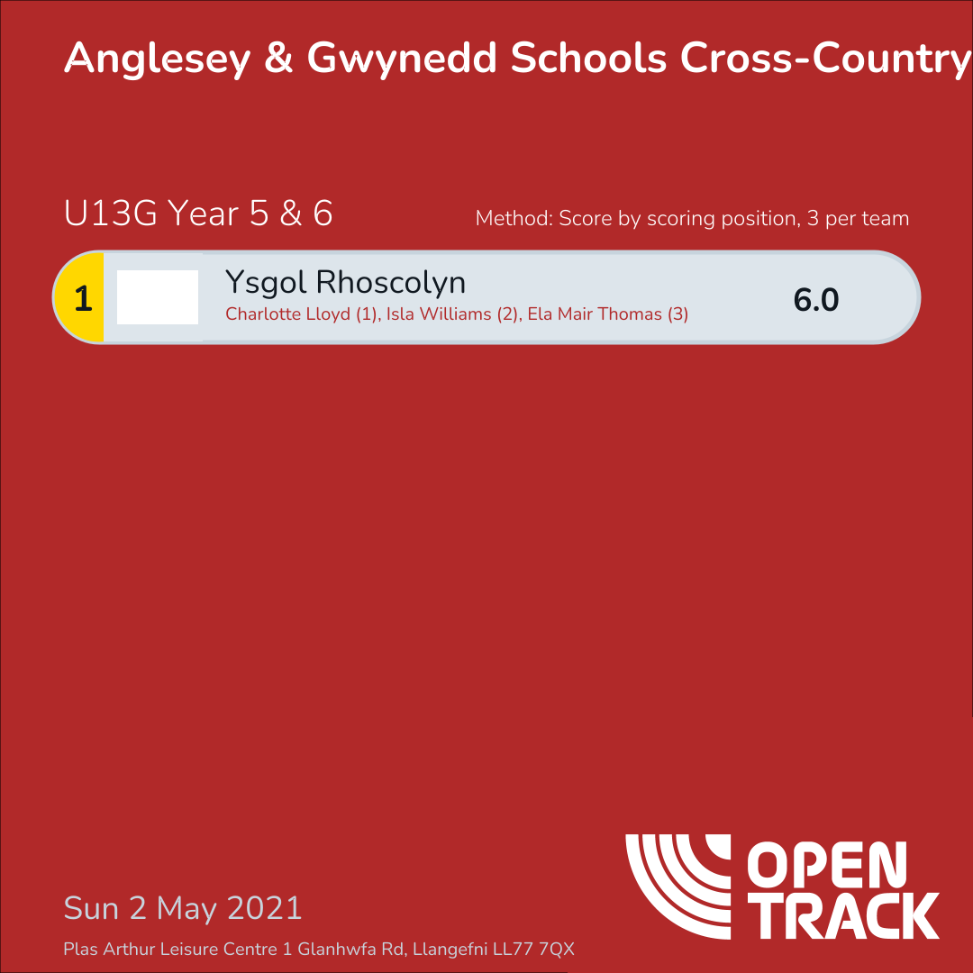 6.0 | 10: Charlotte Lloyd (1), 20: Isla Williams (2), 25: Ela Mair Thomas (3) |
