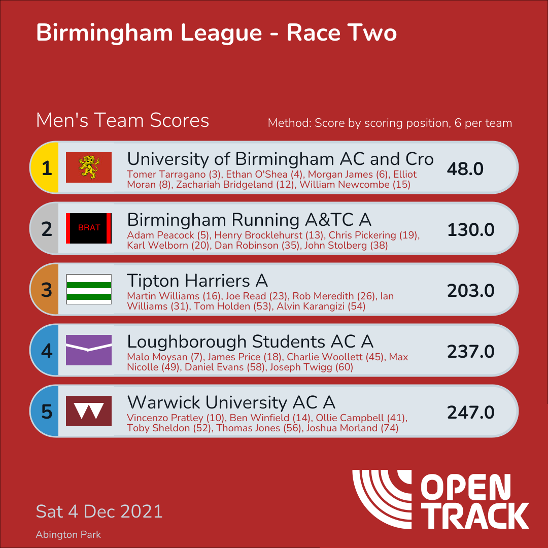 486.0 | 62: Patrick Thomas (62), 63: Nathan Brown (63), 82: Callum Queen (82), 88: George Tipping (88), 90: Toby de Gruchy (90), 101: Angus Saunders (101) | |