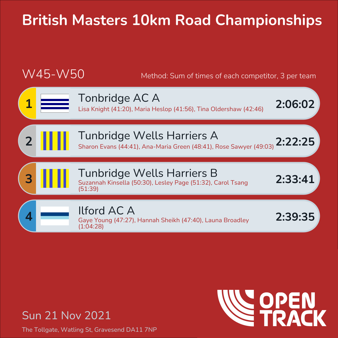 2:06:02 | 77: Lisa Knight (41:20), 85: Maria Heslop (41:56), 92: Tina Oldershaw (42:46) | |