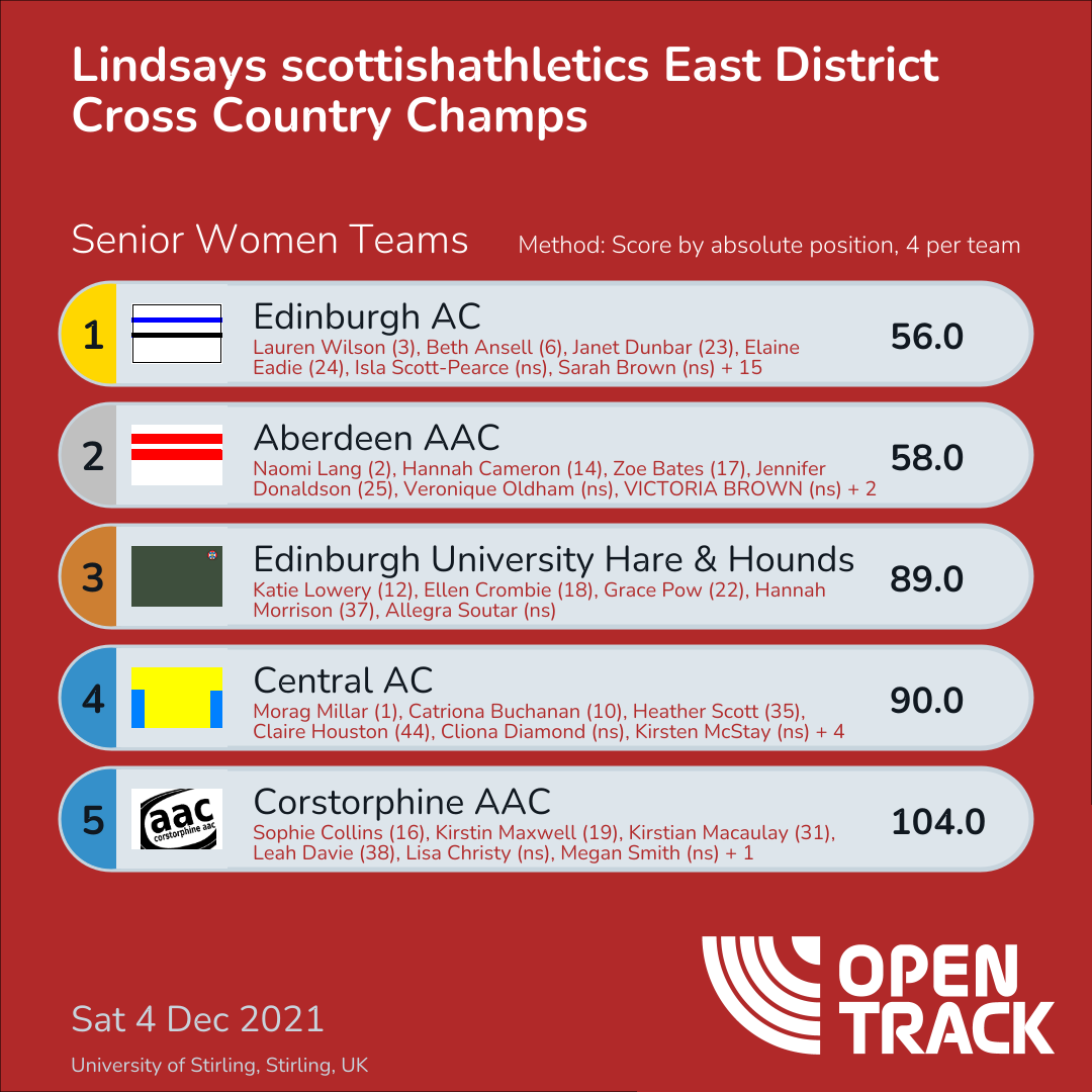 56.0 | 3: Lauren Wilson (3), 6: Beth Ansell (6), 23: Janet Dunbar (23), 24: Elaine Eadie (24) | |