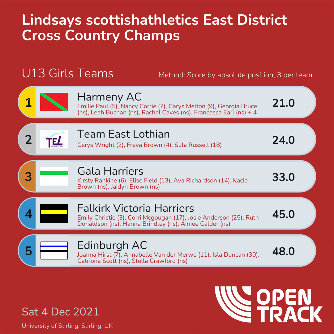 | 1 | - | Eilidh Dallas | U13G |