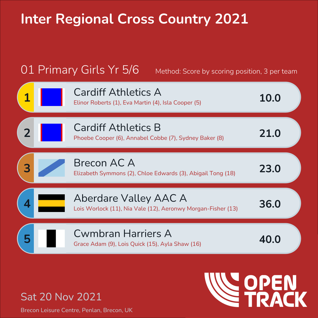 36.0 | 25: Lois Worlock (11), 26: Nia Vale (12), 29: Aeronwy Morgan-Fisher (13) | |