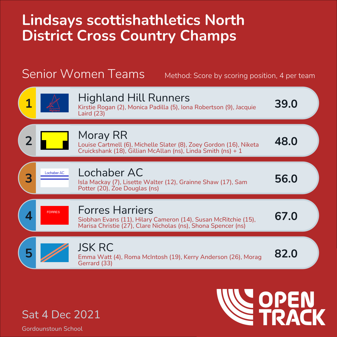 82.0 | 6: Emma Watt (4), 21: Roma McIntosh (19), 28: Kerry Anderson (26), 35: Morag Gerrard (33) |