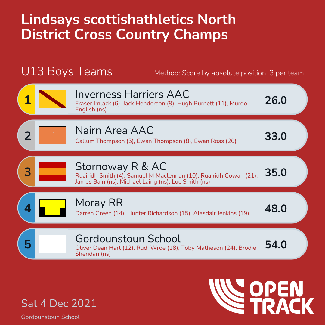 | 4 | 4 | Ruairidh Smith | U13B |
