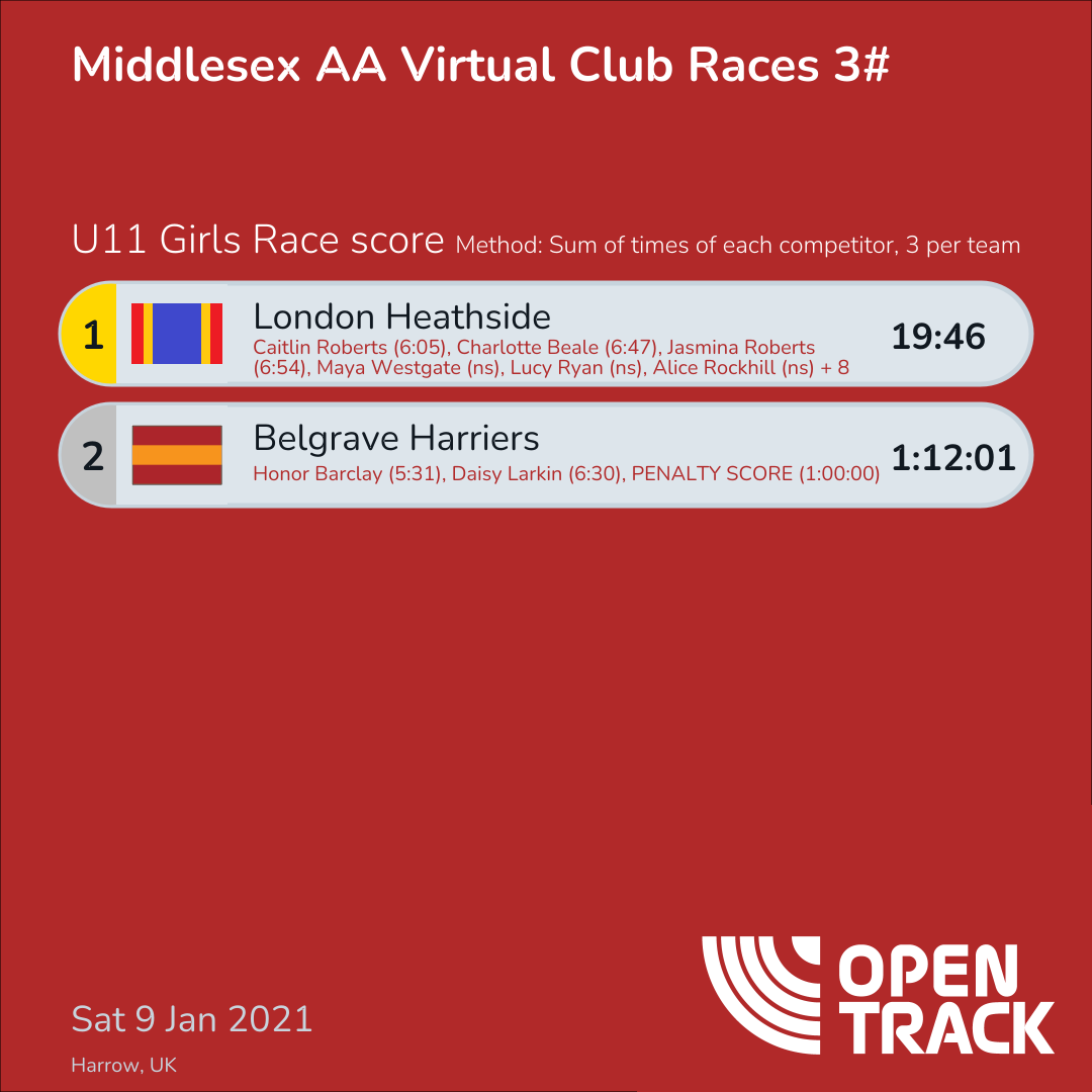 1:12:01 | 1: Honor Barclay (5:31), 3: Daisy Larkin (6:30), 3600: PENALTY SCORE (1:00:00) |