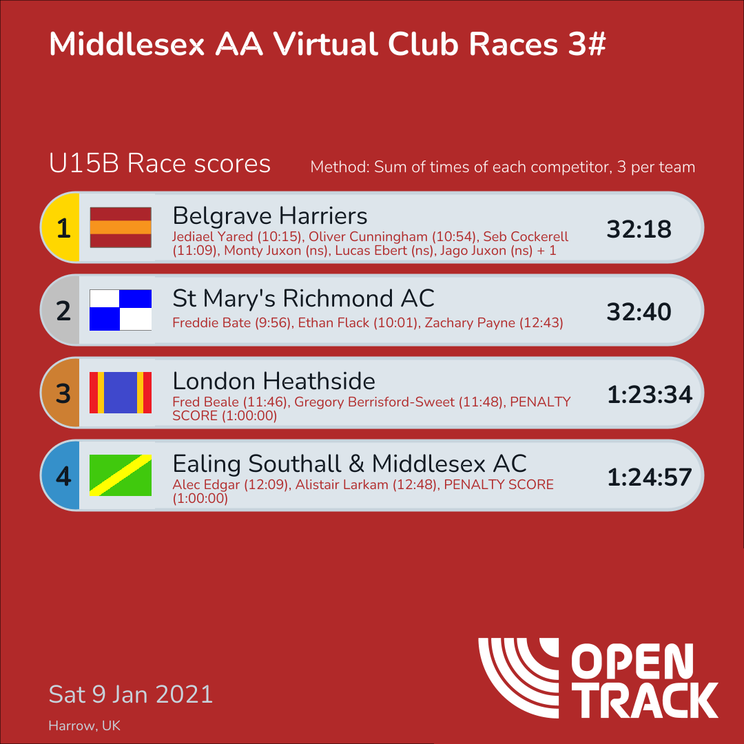 | 4 | 654 | Oliver Cunningham | U15B |
