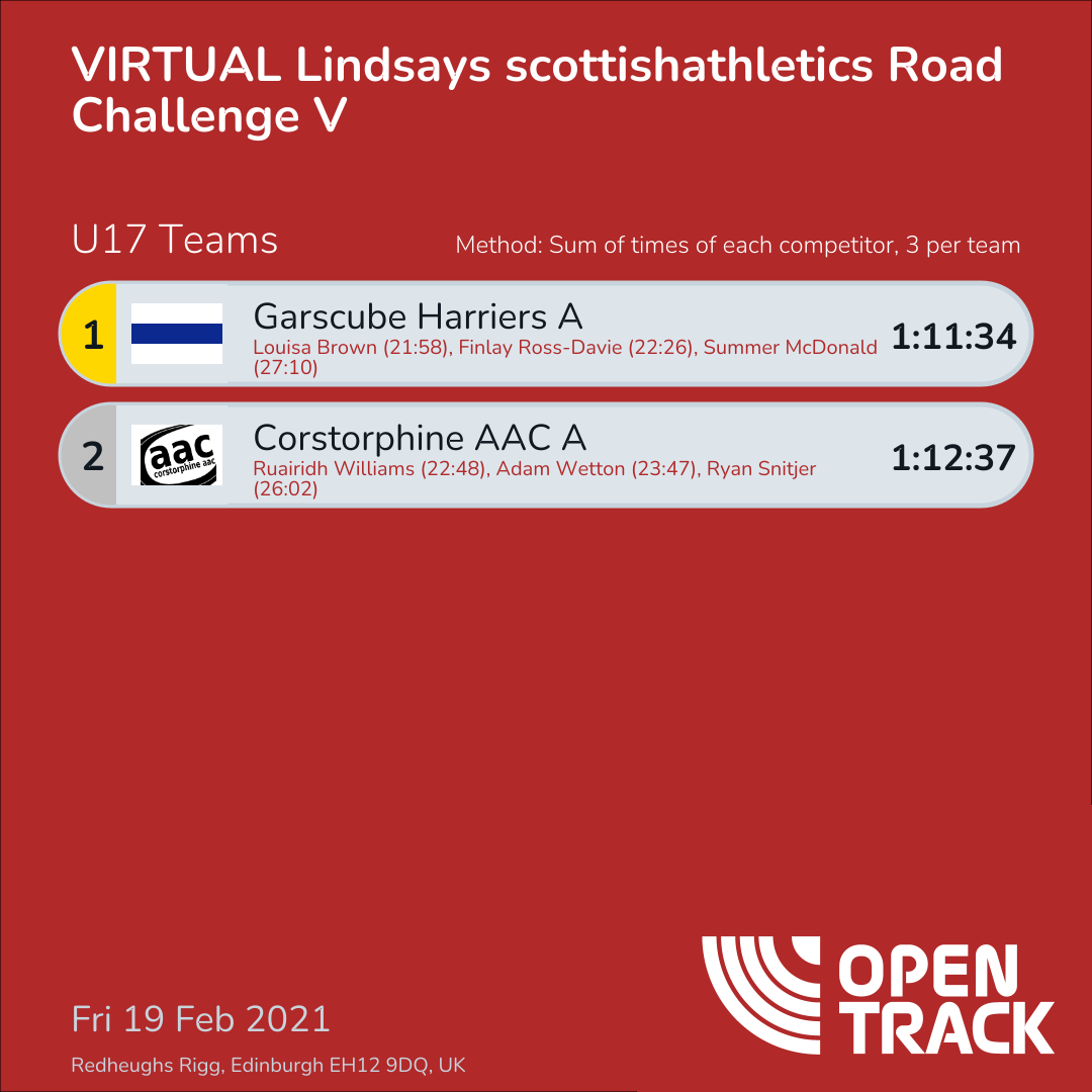 1:11:34 | 3: Louisa Brown (21:58), 6: Finlay Ross-Davie (22:26), 18: Summer McDonald (27:10) | |