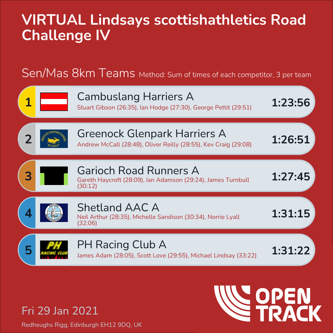 1:31:15 | 14: Neil Arthur (28:35), 33: Michelle Sandison (30:34), 38: Norrie Lyall (32:06) | |