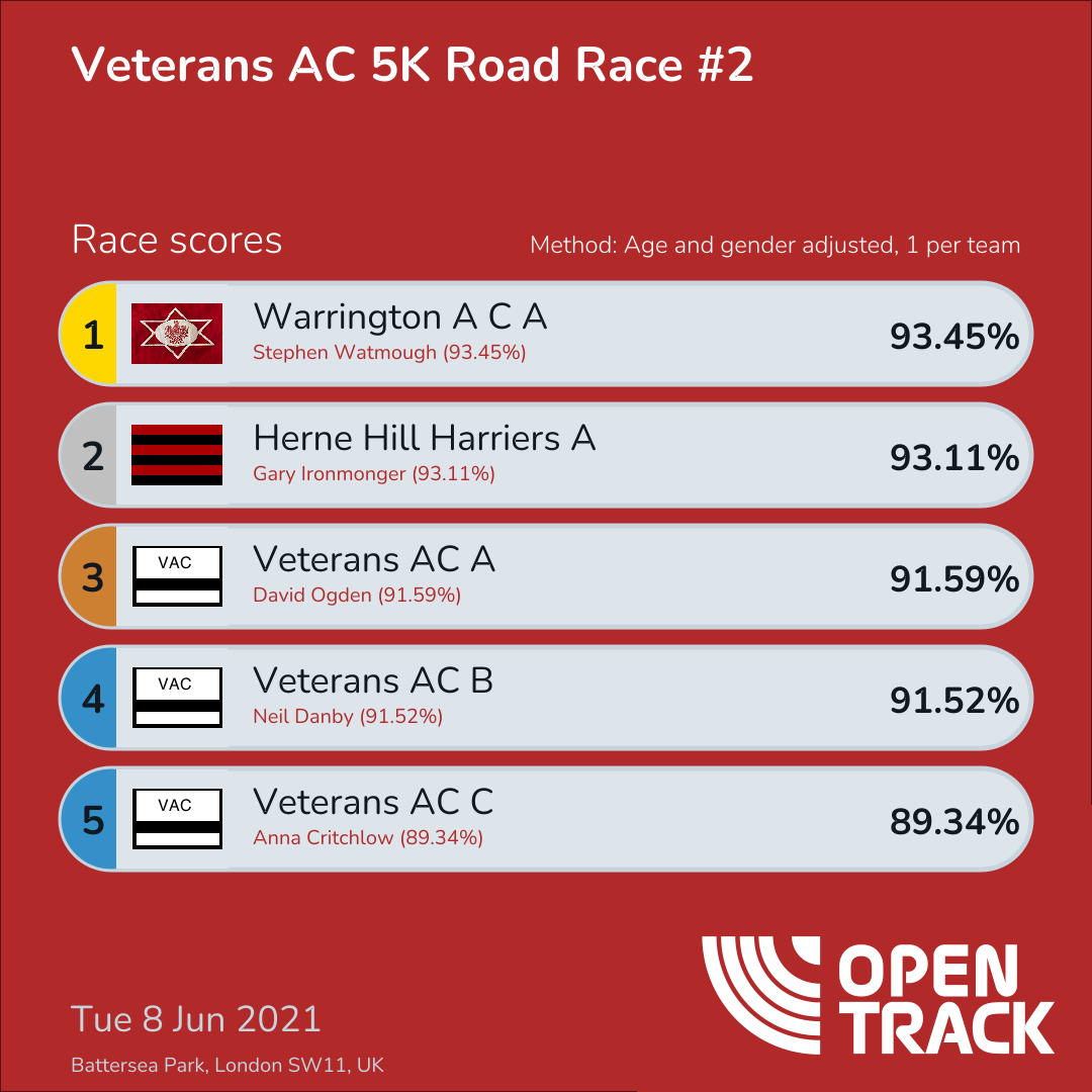 | 4 | 6978 | Stuart Bennett | M60 |