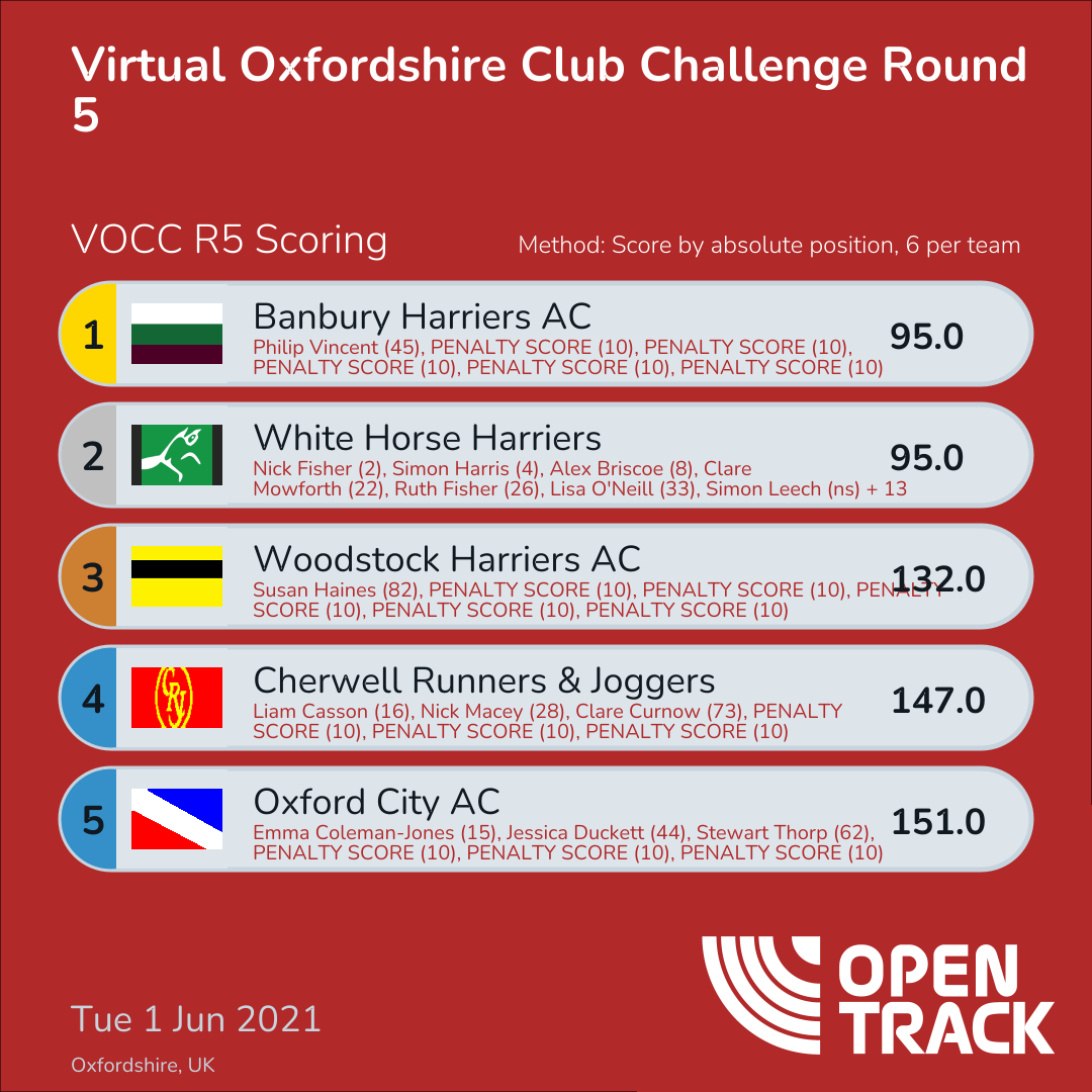 315.0 | 19: Graham Bridges (19), 50: Simon Walker (50), 65: Rosamond Hall (65), 84: Caroline Ogden (84), 87: Marina Barlow-Oakes (87), 10: PENALTY SCORE (10) | |