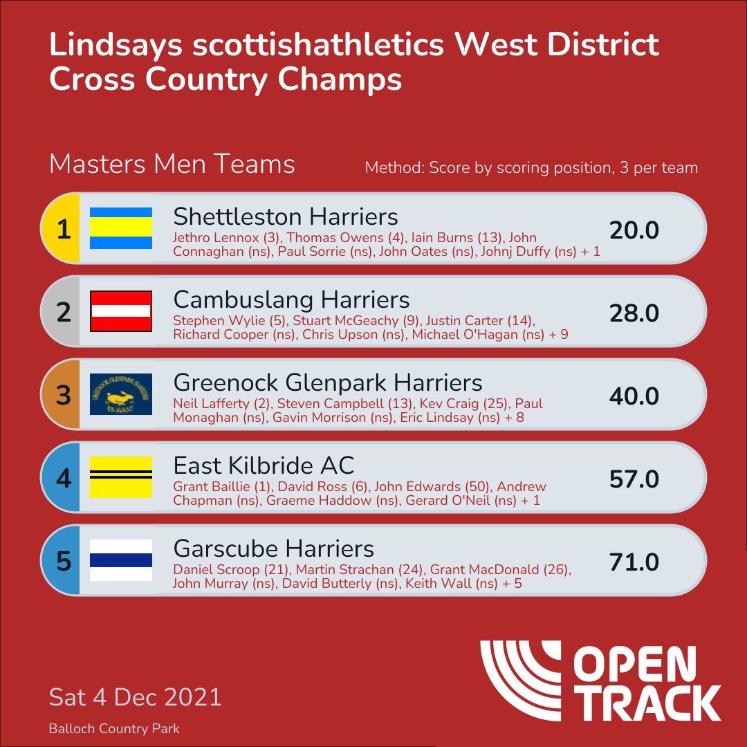 20.0 | 29: Jethro Lennox (3), 34: Thomas Owens (4), 62: Iain Burns (13) | |