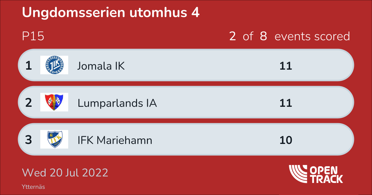 - Winner JIK: 13 (Scored 2 out of 8 events) (click to show results)| Team: | JIK | IFK | VIK | IFFK | EIK | HIK | IFA | IFF | IFR | LIF | LUIA |
