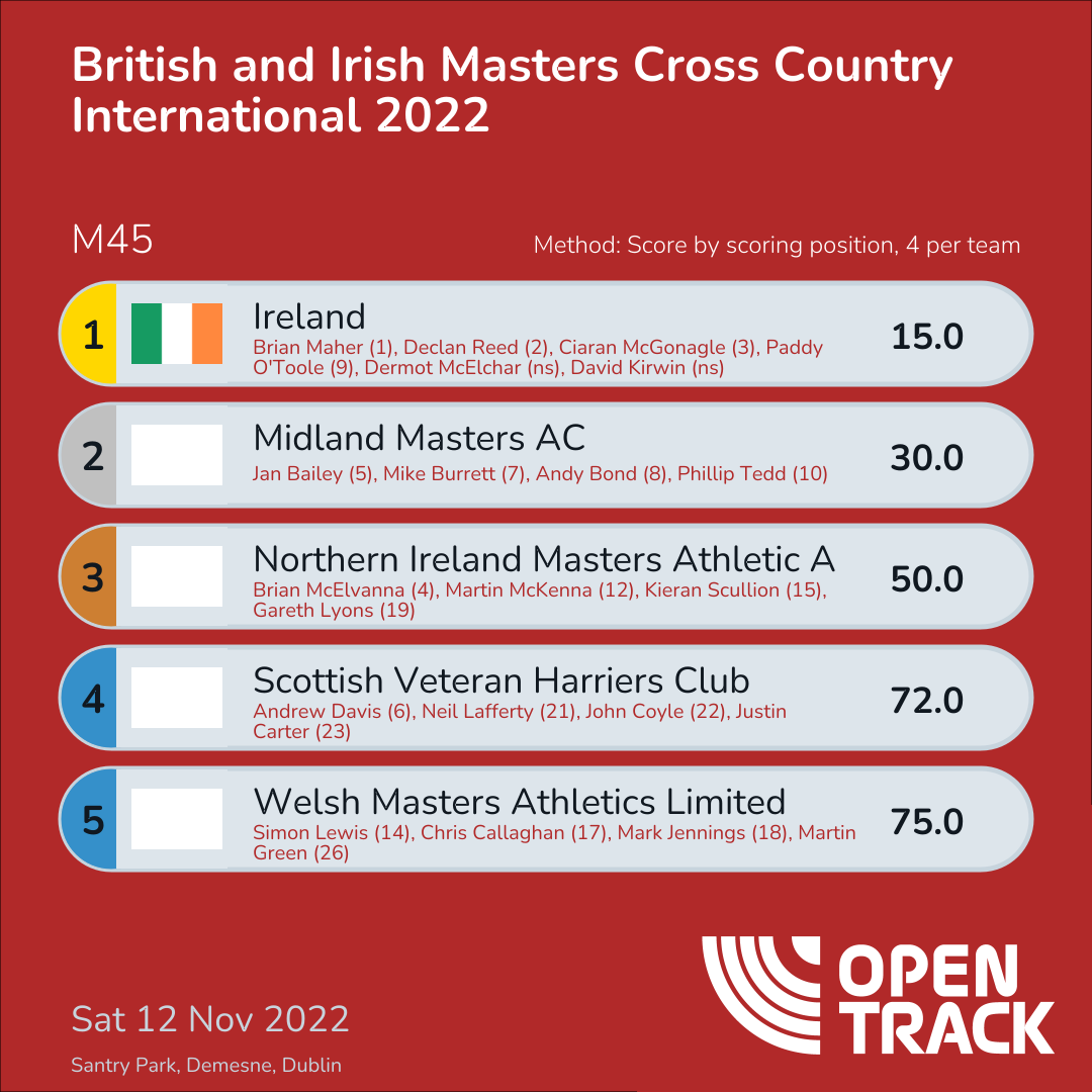 30.0 | 28: Jan Bailey (5), 36: Mike Burrett (7), 38: Andy Bond (8), 41: Phillip Tedd (10) | |