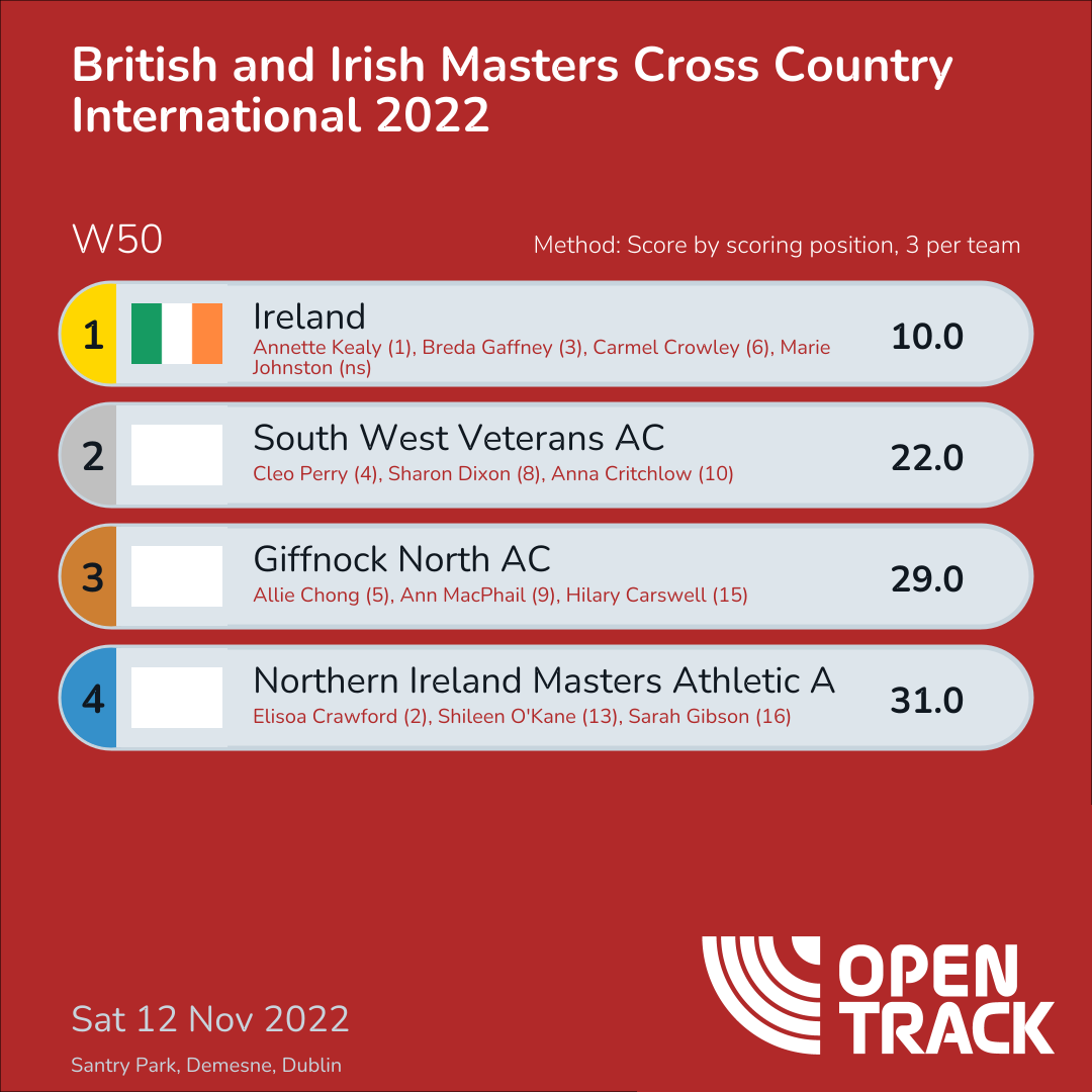 10.0 | 22: Annette Kealy (1), 28: Breda Gaffney (3), 42: Carmel Crowley (6) | |