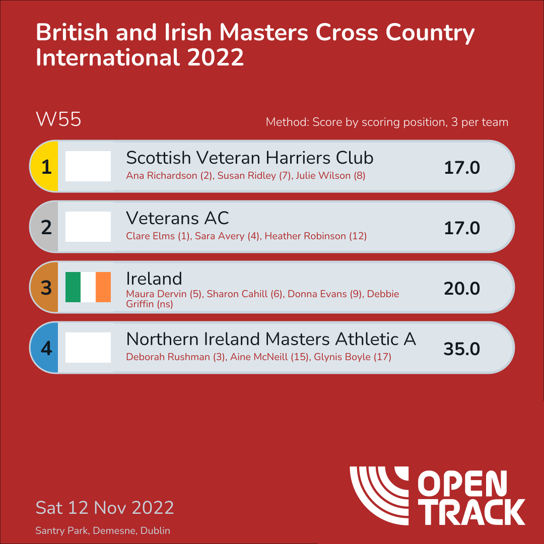35.0 | 57: Deborah Rushman (3), 99: Aine McNeill (15), 106: Glynis Boyle (17) |