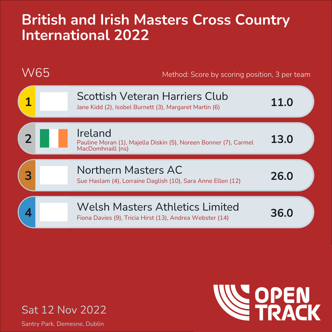 13.0 | 20: Pauline Moran (1), 39: Majella Diskin (5), 50: Noreen Bonner (7) | |