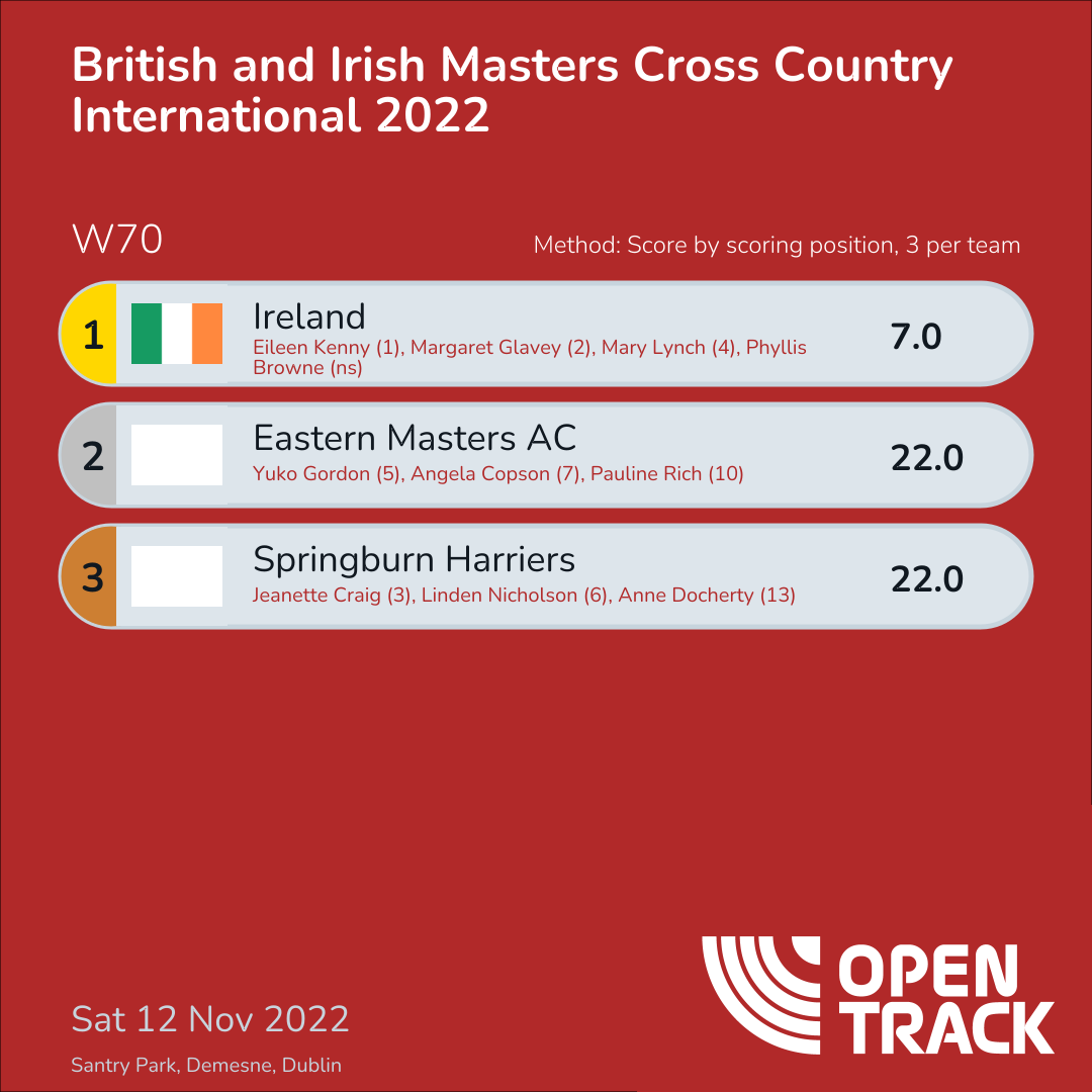 22.0 | 51: Yuko Gordon (5), 64: Angela Copson (7), 82: Pauline Rich (10) | |