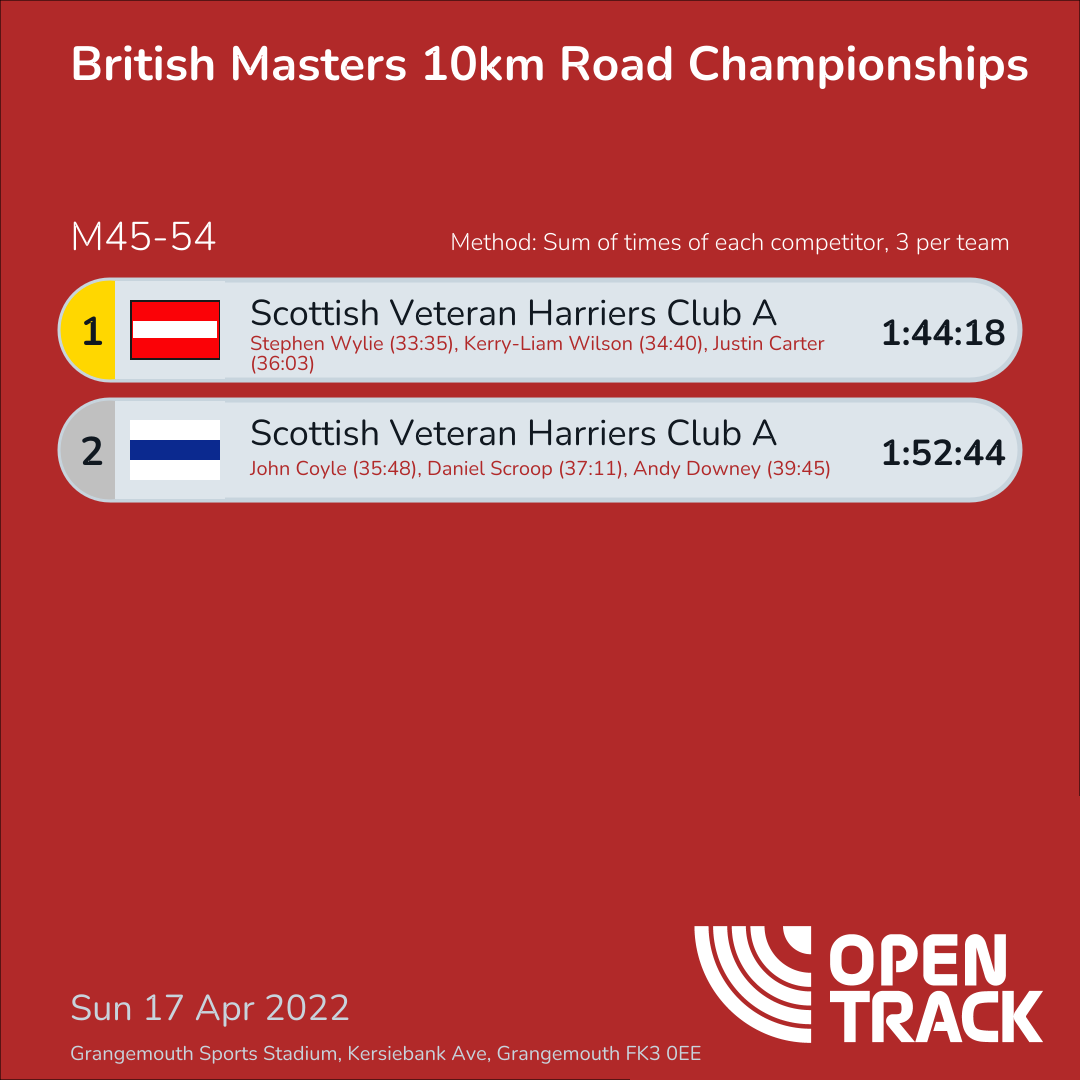 | 1 | CAMBL-A | 1:44:18 | 5: Stephen Wylie (33:35), 14: Kerry-Liam Wilson (34:40), 20: Justin Carter (36:03) | |
