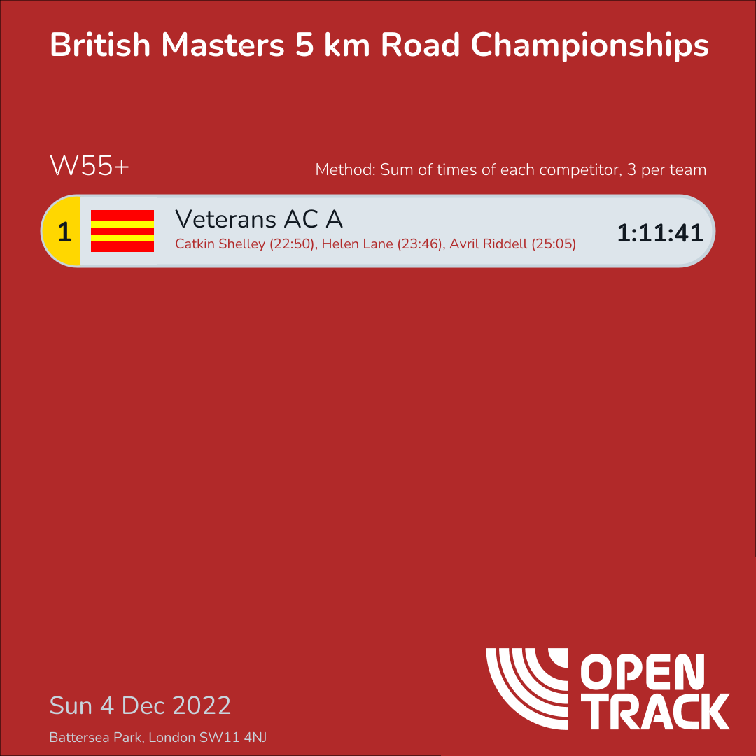 1:11:41 | 145: Catkin Shelley (22:50), 149: Helen Lane (23:46), 158: Avril Riddell (25:05) |