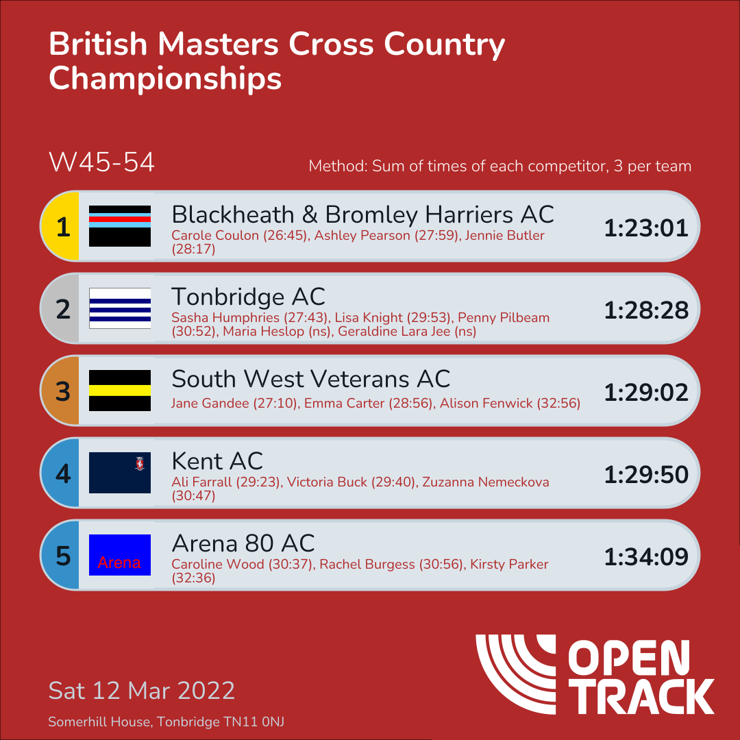 1:29:02 | 9: Jane Gandee (27:10), 31: Emma Carter (28:56), 77: Alison Fenwick (32:56) | |