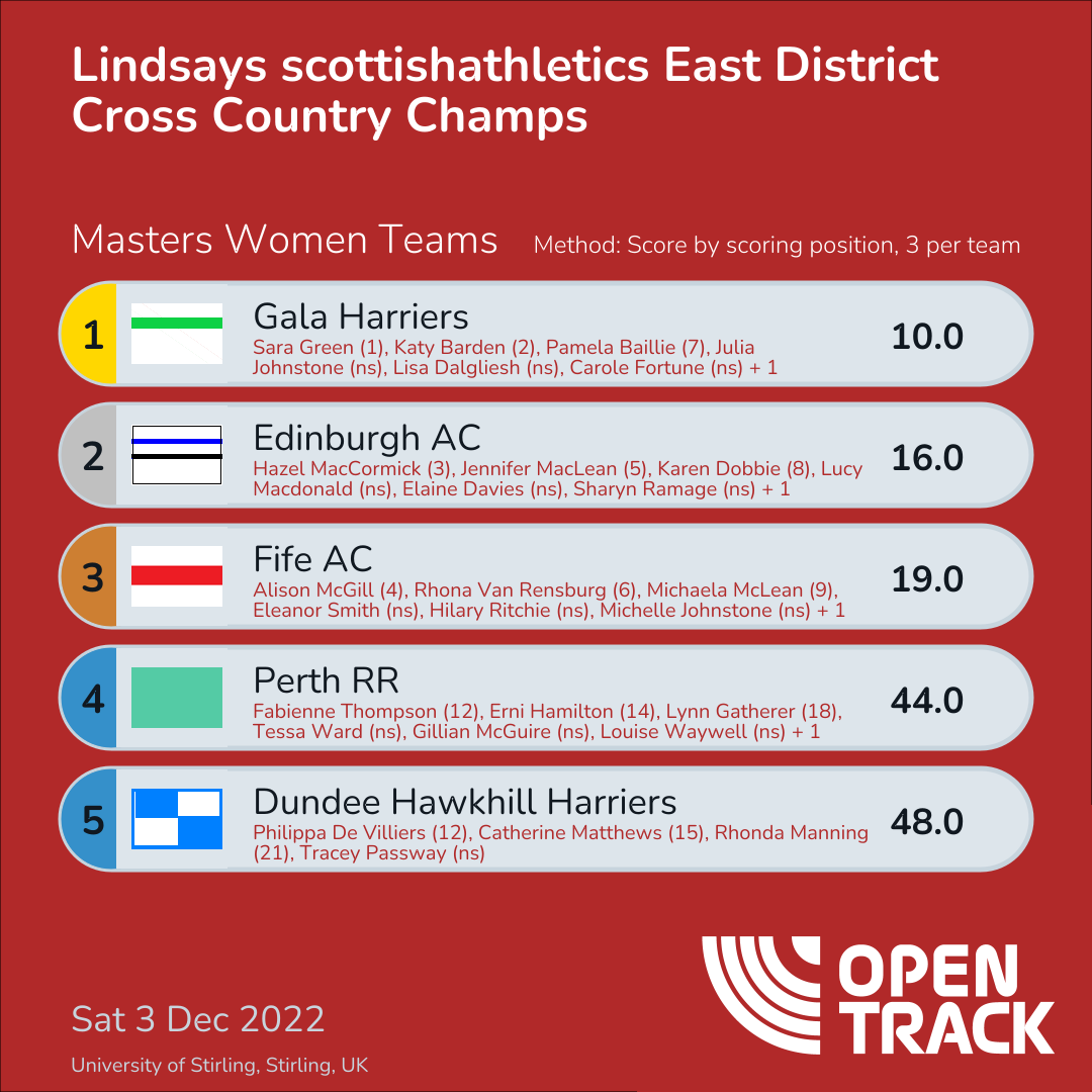 54.0 | 56: Gail Burchill (13), 81: Nicola Mcguire (19), 103: Susan Ross (22) |