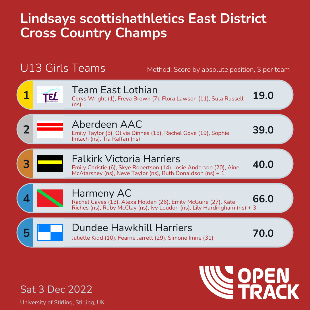 19.0 | 1: Cerys Wright (1), 7: Freya Brown (7), 11: Flora Lawson (11) | |