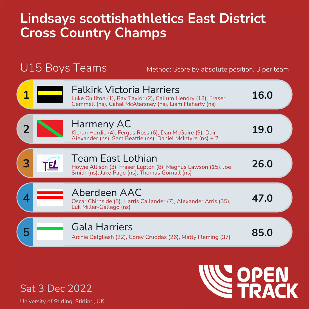 | 6 | 6 | Fergus Ross | U15B |
