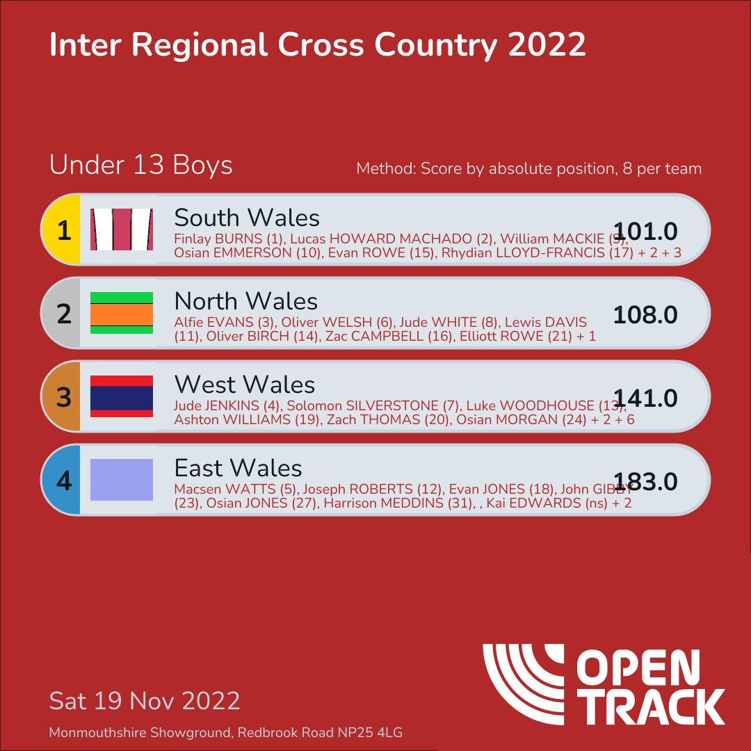 141.0 | 4: Jude JENKINS (4), 7: Solomon SILVERSTONE (7), 13: Luke WOODHOUSE (13), 19: Ashton WILLIAMS (19), 20: Zach THOMAS (20), 24: Osian MORGAN (24), 26: Harri ROBERTS-TRUMAN (26), 28: Deri JONES (28) | |