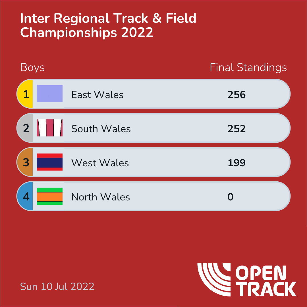 | U17W 4 x 300m | 6 | 4 | 8 | 0 |