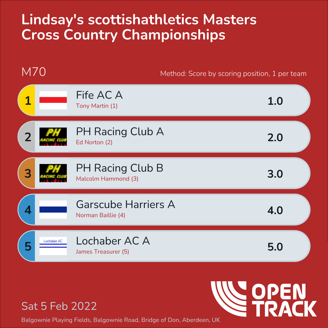 | 66 | 7 | Ian Johnstone | M70 |