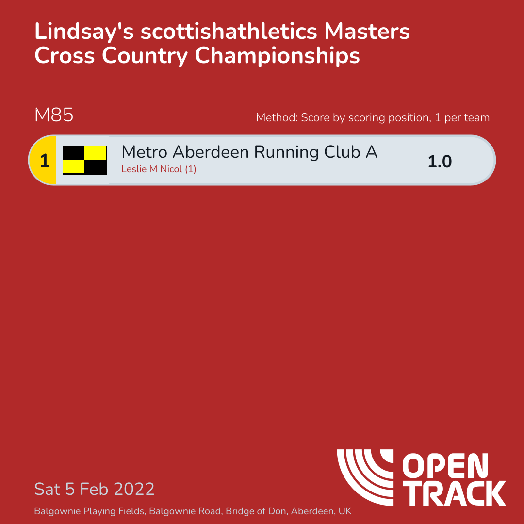 | 103 | 1 | Leslie M Nicol | M85 |