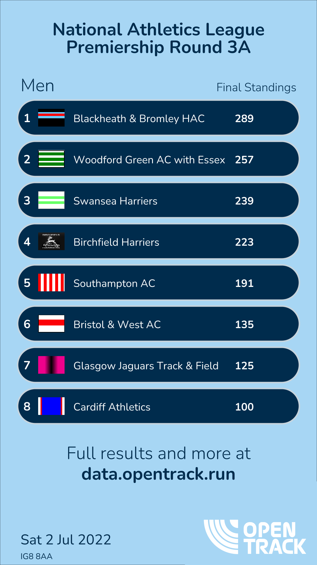 | Women's High Jump | 0 | 22 | 16 | 5 | 6 | 13 | 10 | 0 |