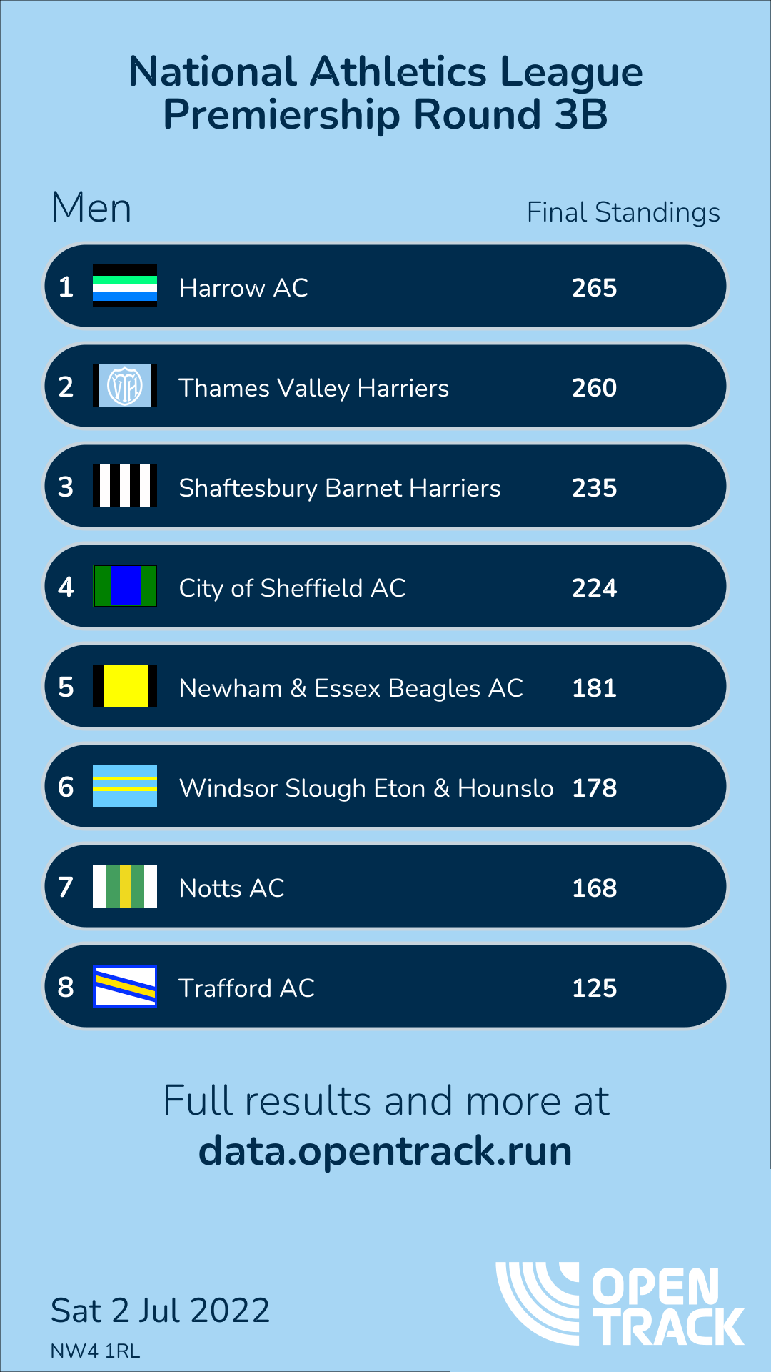 - Winner HARR: 265 (Scored 19 out of 19 events) (click to show results)| Team: |