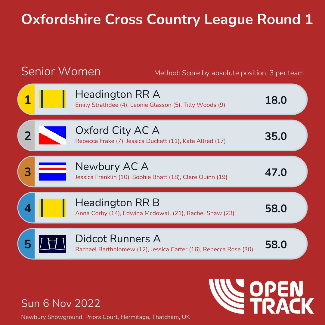 | 9 | HEAD-C | 99.0 | 25: Lucy Goddard (25), 36: Charlotte Cox (36), 38: Yvonne Morris (38) | |