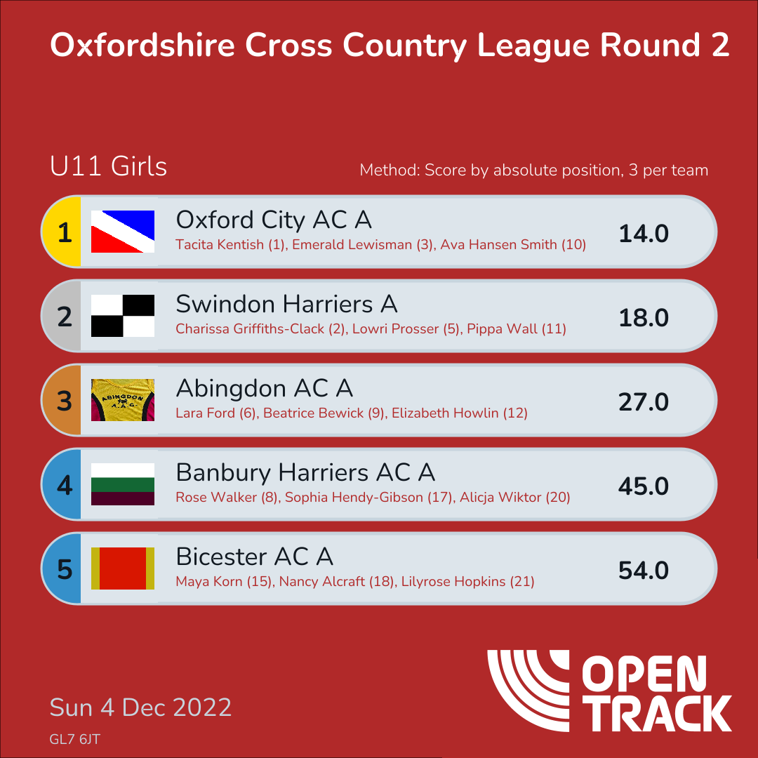 | 2 | 2 | Charissa Griffiths-Clack | U11G |