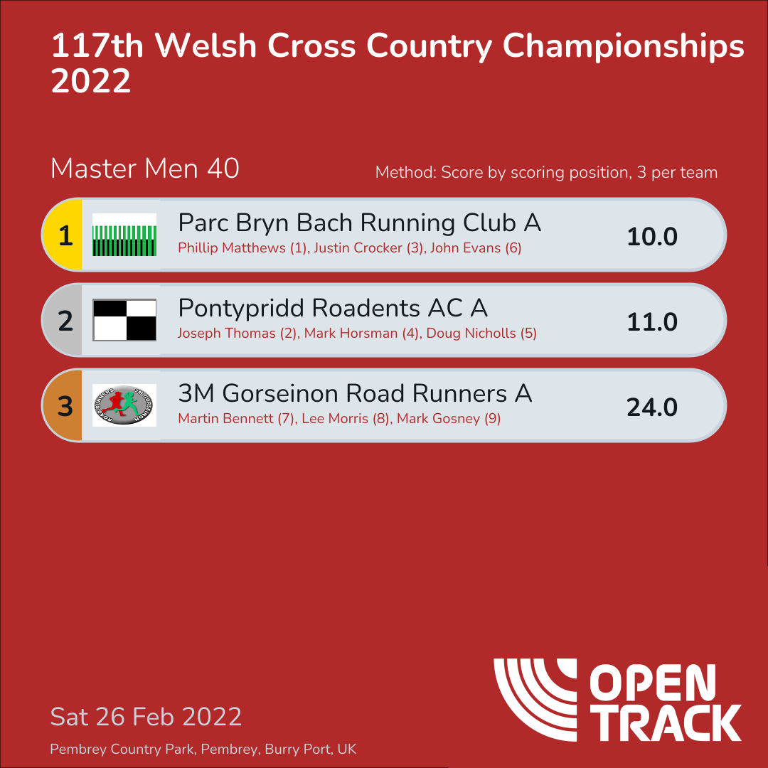 11.0 | 22: Joseph Thomas (2), 41: Mark Horsman (4), 48: Doug Nicholls (5) | |