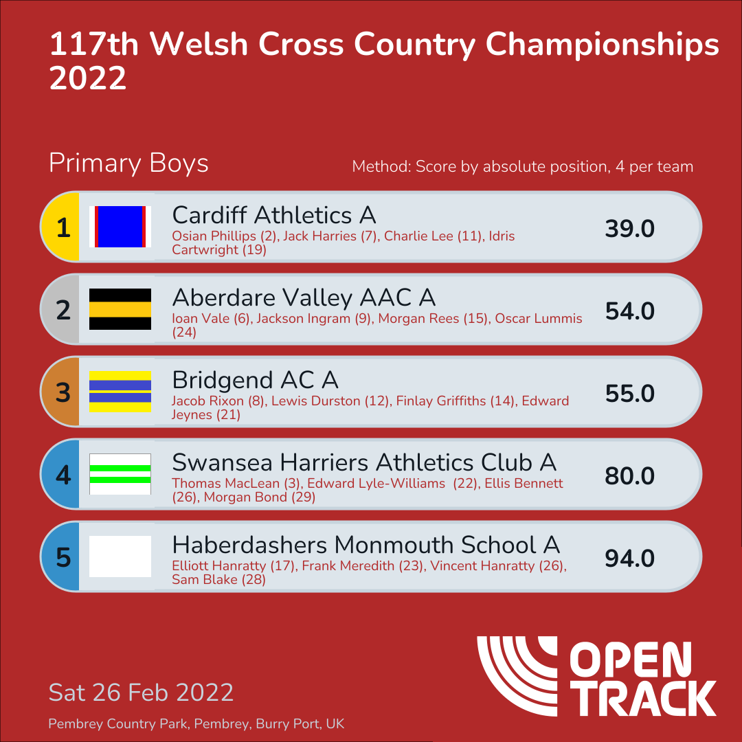 39.0 | 2: Osian Phillips (2), 7: Jack Harries (7), 11: Charlie Lee (11), 19: Idris Cartwright (19) | |
