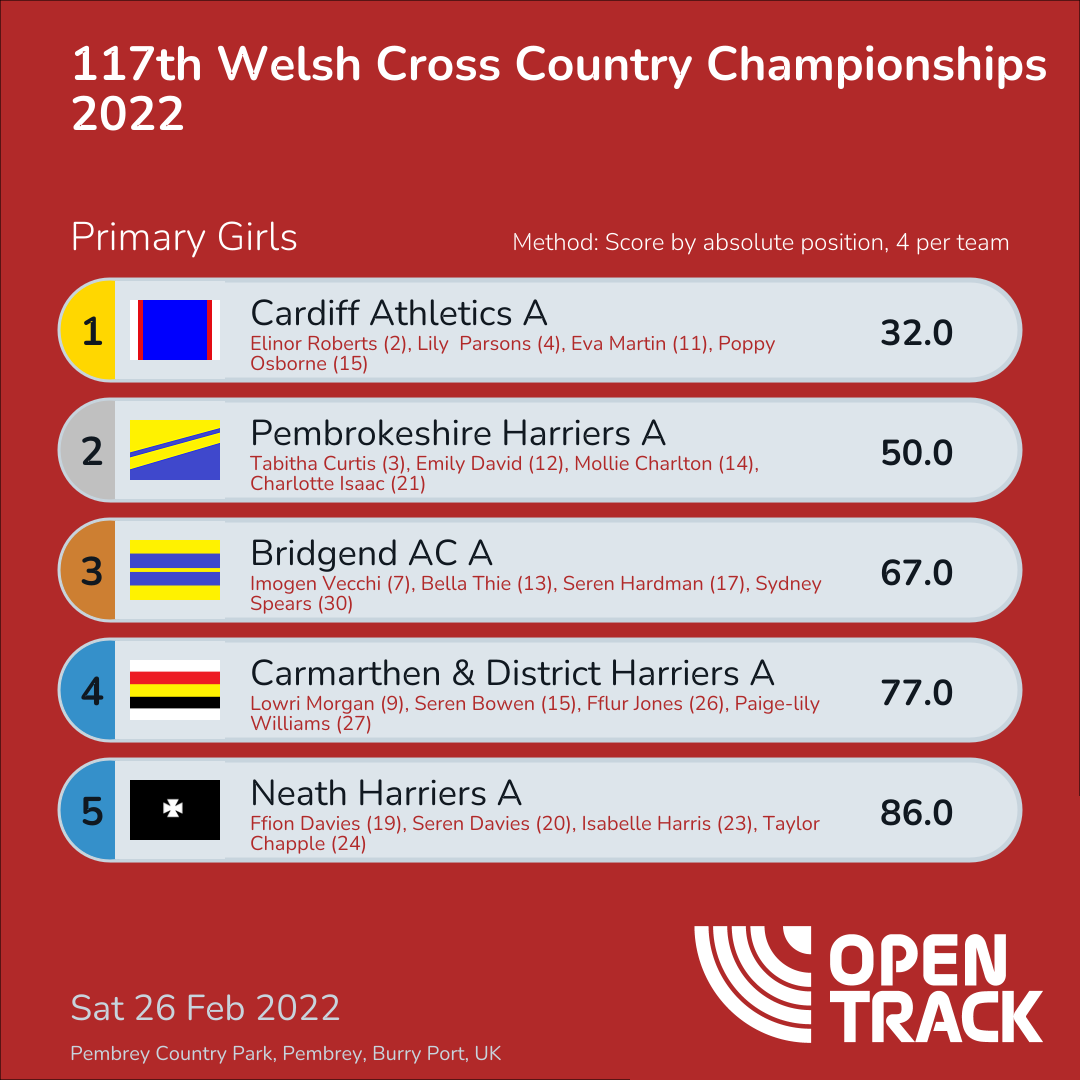 | 4 | 4 | Lily Parsons | U13G |