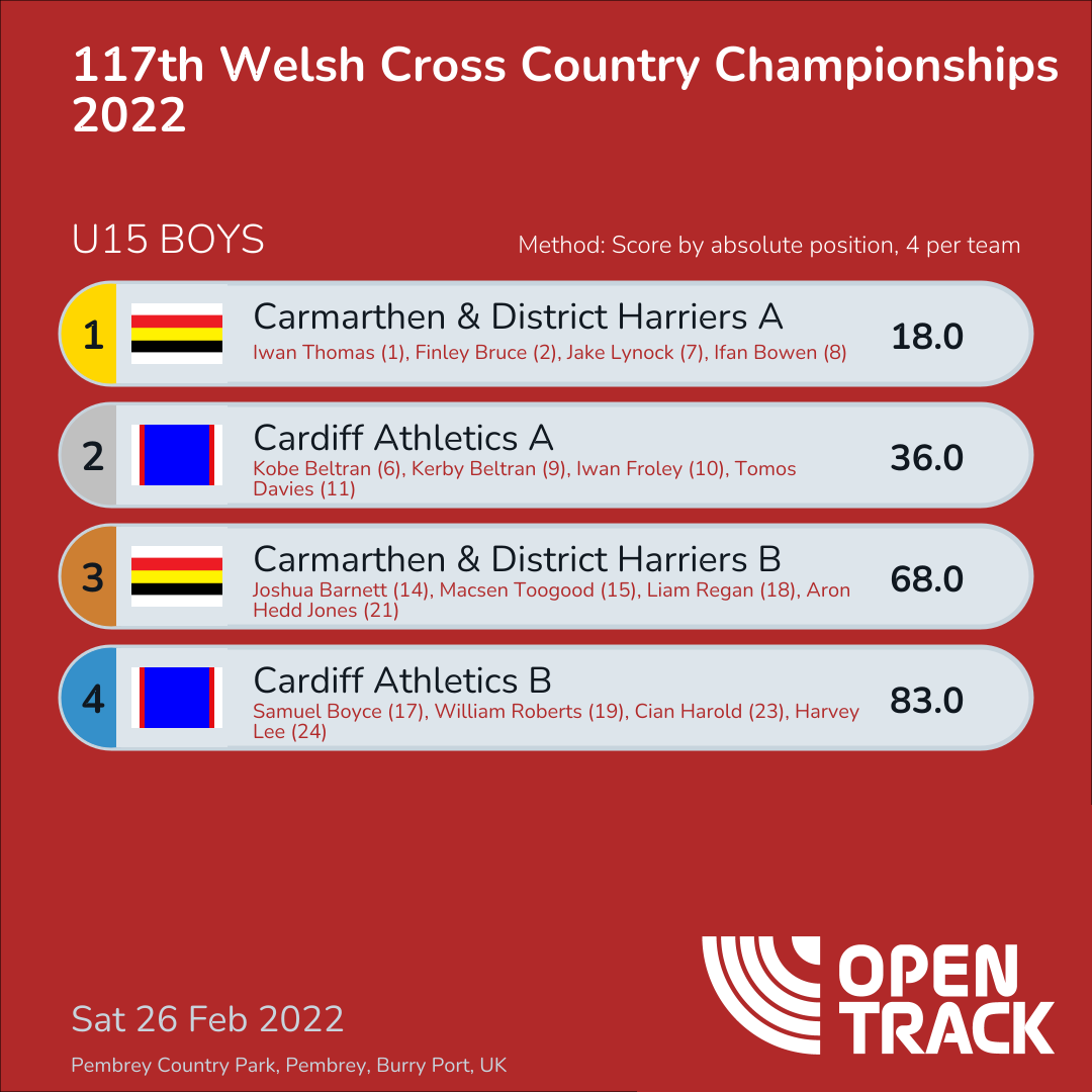68.0 | 14: Joshua Barnett (14), 15: Macsen Toogood (15), 18: Liam Regan (18), 21: Aron Hedd Jones (21) | |