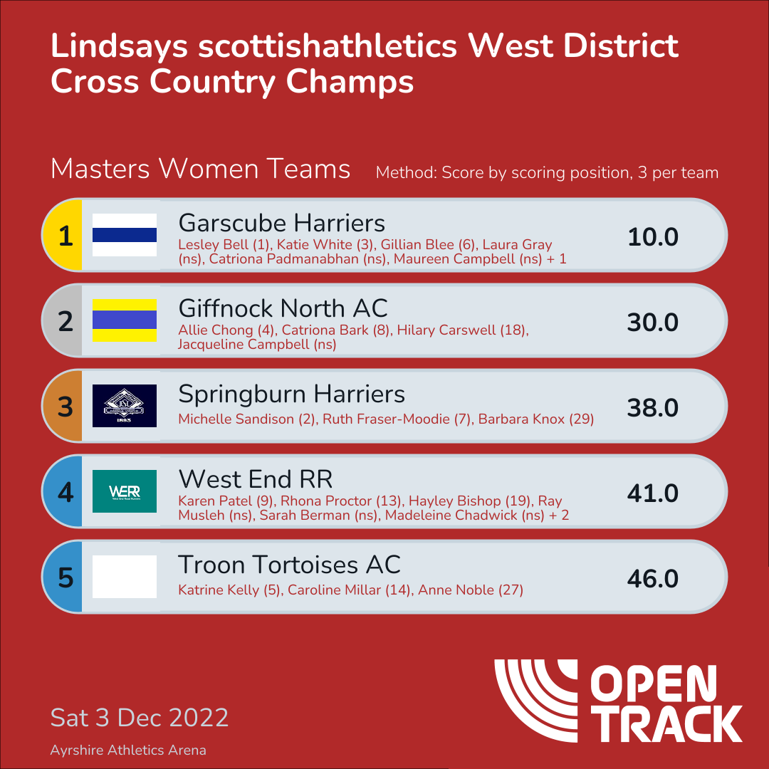 38.0 | 9: Michelle Sandison (2), 30: Ruth Fraser-Moodie (7), 116: Barbara Knox (29) | |