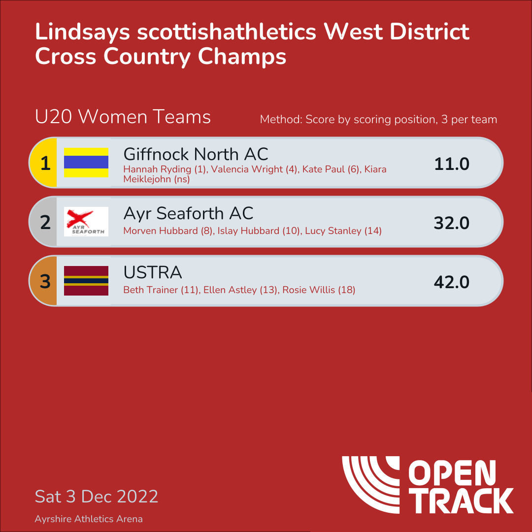 42.0 | 39: Beth Trainer (11), 42: Ellen Astley (13), 48: Rosie Willis (18) |