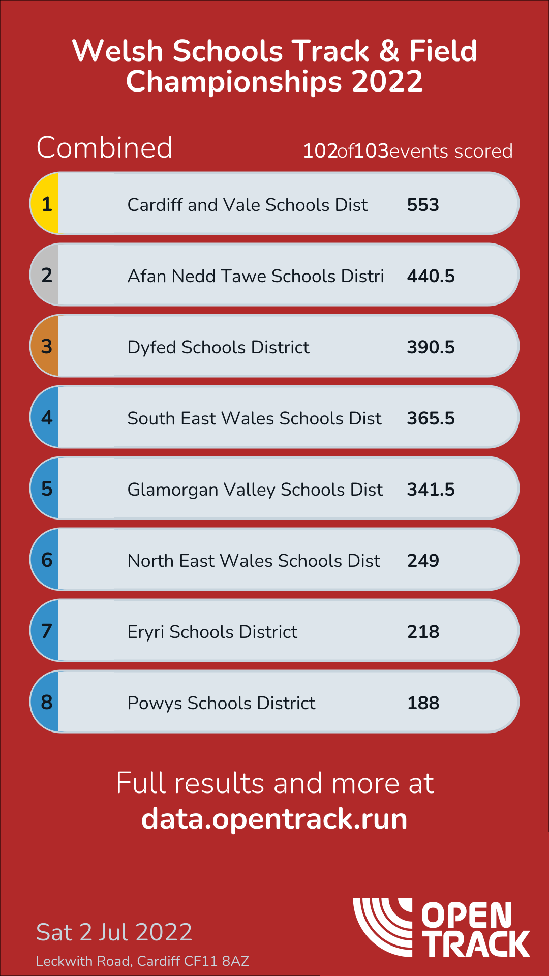 - Winner GLA: 93 (Scored 19 out of 19 events) (click to show results)| Team: |