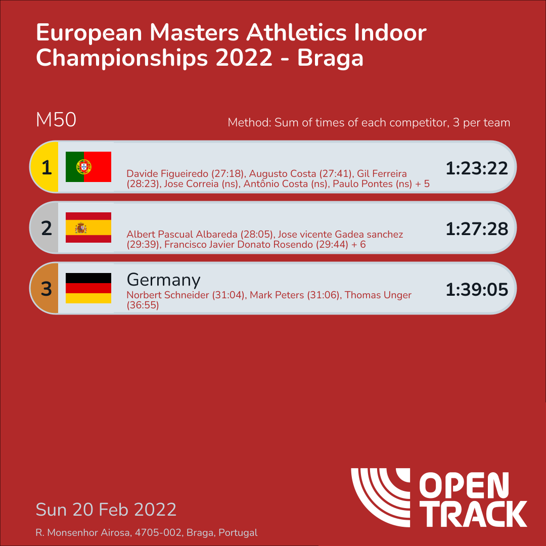 1:23:22 | 2: Davide Figueiredo (27:18), 4: Augusto Costa (27:41), 10: Gil Ferreira (28:23) | |