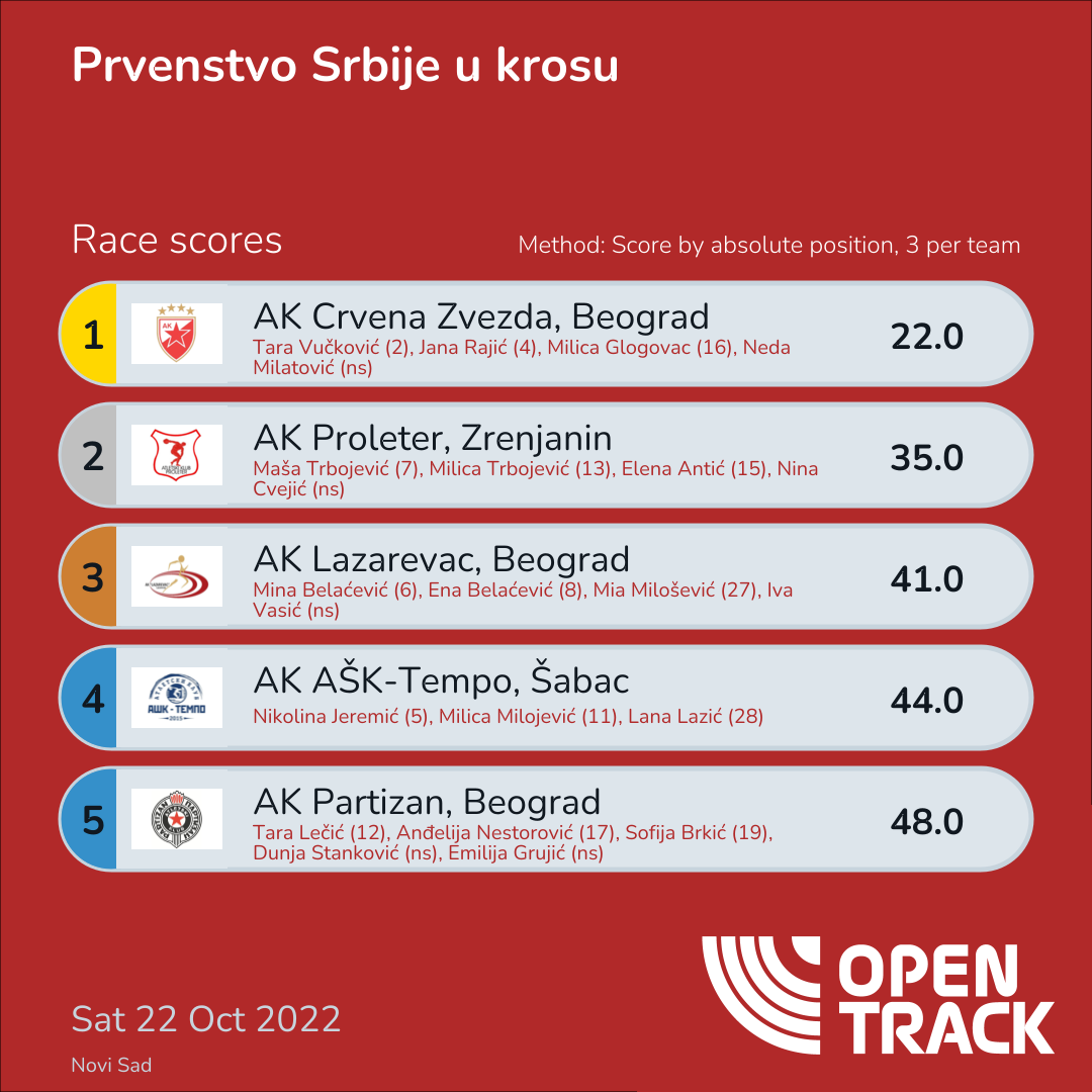 35.0 | 7: Maša Trbojević (7), 13: Milica Trbojević (13), 15: Elena Antić (15) | |