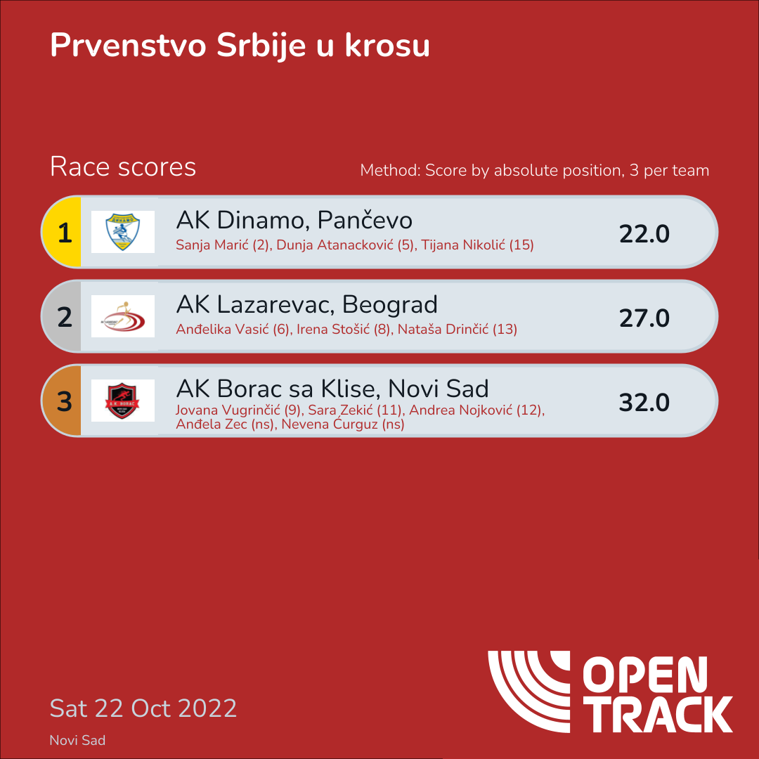22.0 | 2: Sanja Marić (2), 5: Dunja Atanacković (5), 15: Tijana Nikolić (15) | |