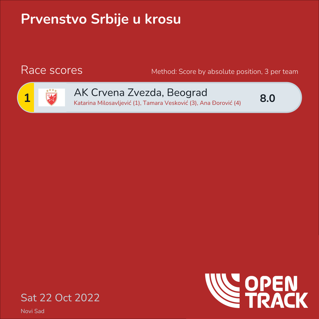 | 1 | 1 | Katarina Milosavljević | U23W |