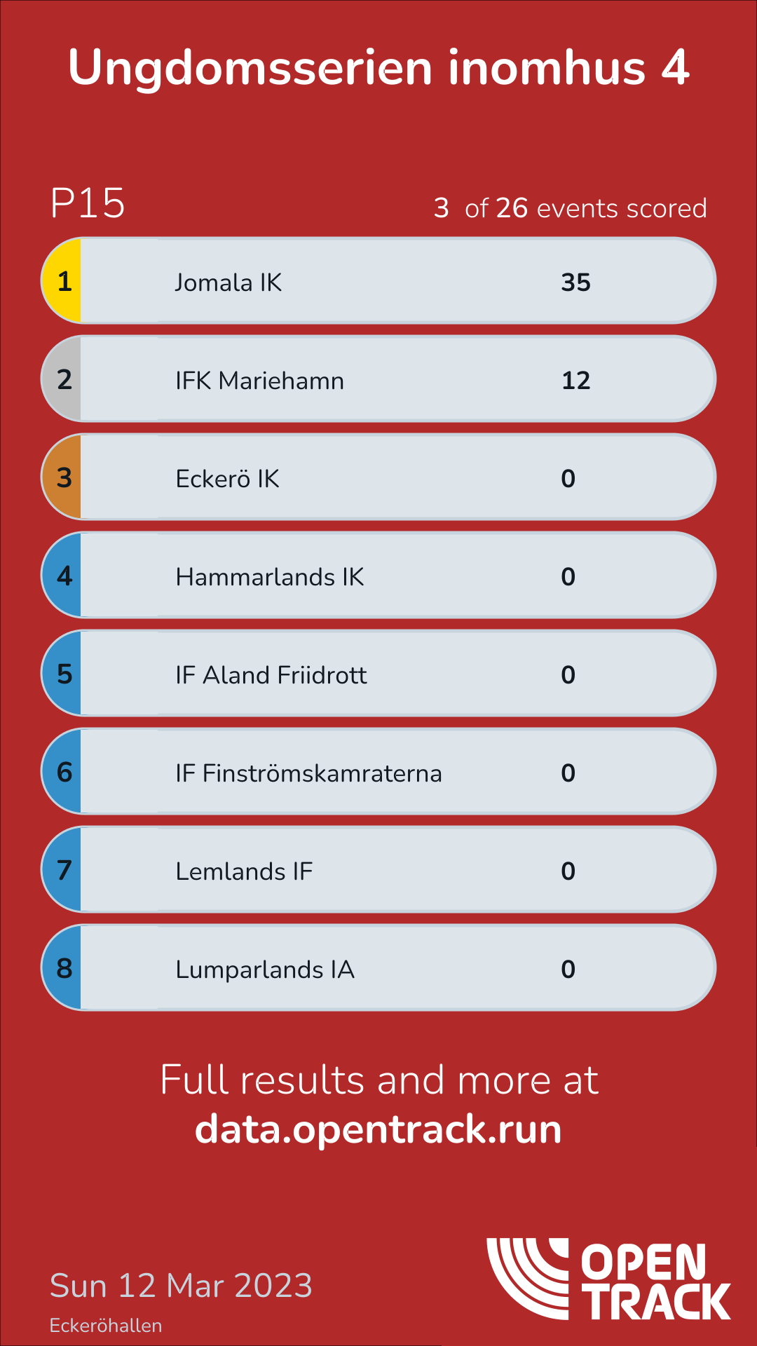 - Winner EIK: 25 (Scored 3 out of 26 events) (click to show results)| Team: |