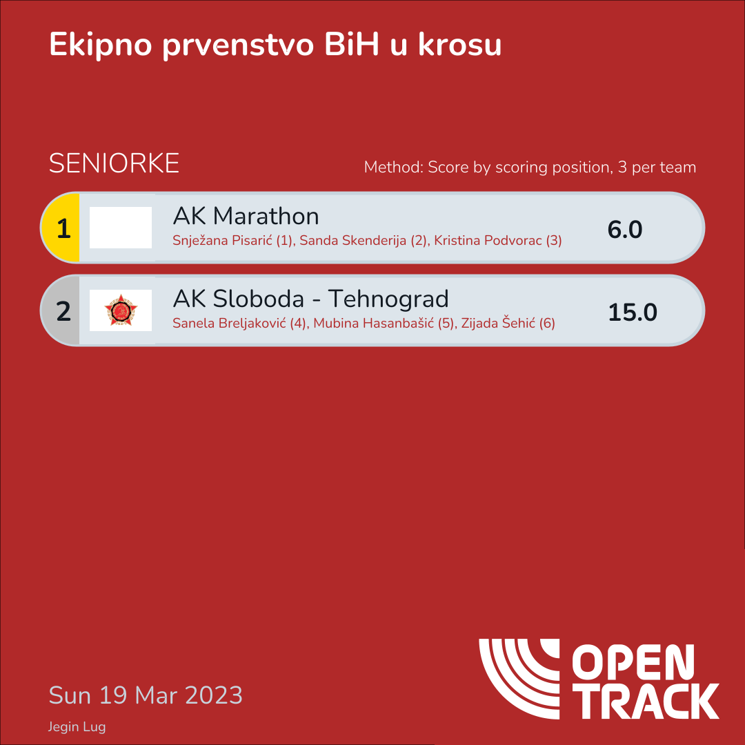 | 1 | MAB | 6.0 | 1: Snježana Pisarić (1), 2: Sanda Skenderija (2), 3: Kristina Podvorac (3) | |