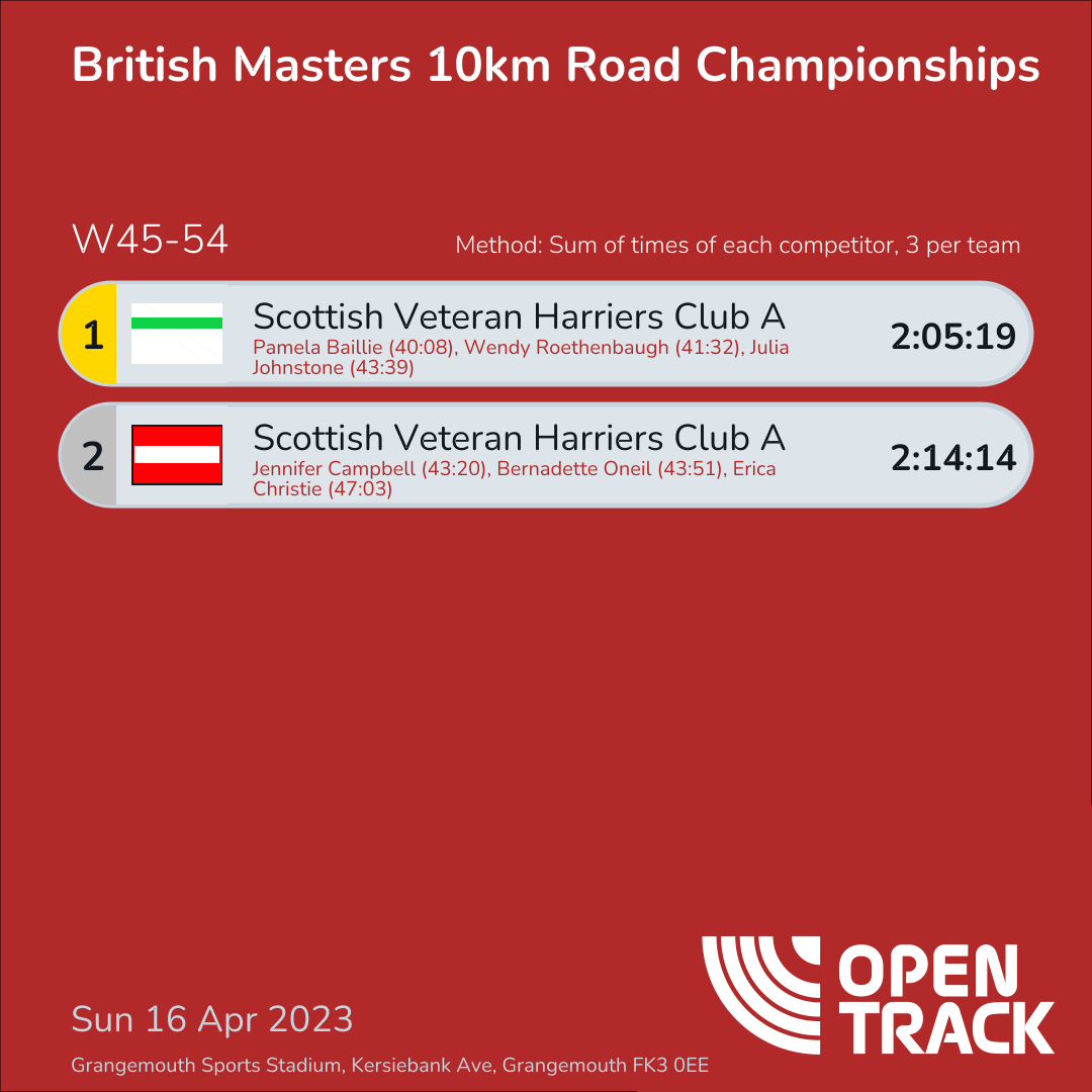 | 2 | CAMBL-A | 2:14:14 | 82: Jennifer Campbell (43:20), 86: Bernadette Oneil (43:51), 94: Erica Christie (47:03) |