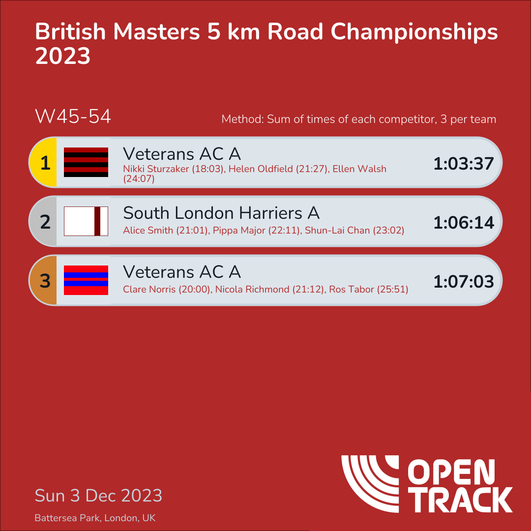 1:06:14 | 151: Alice Smith (21:01), 165: Pippa Major (22:11), 172: Shun-Lai Chan (23:02) | |